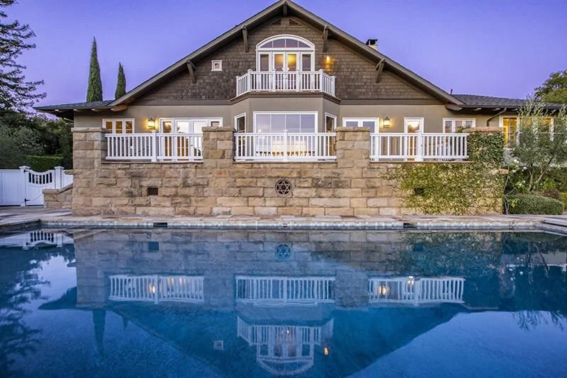 You will be drawn to enjoy the pool, spa, outdoor fireplace, custom built in barbeque and Bocce court year around. The landscape is marked by mature privacy hedges, citrus orchard, boxwood garden beds, climbing roses and custom stone patio areas.